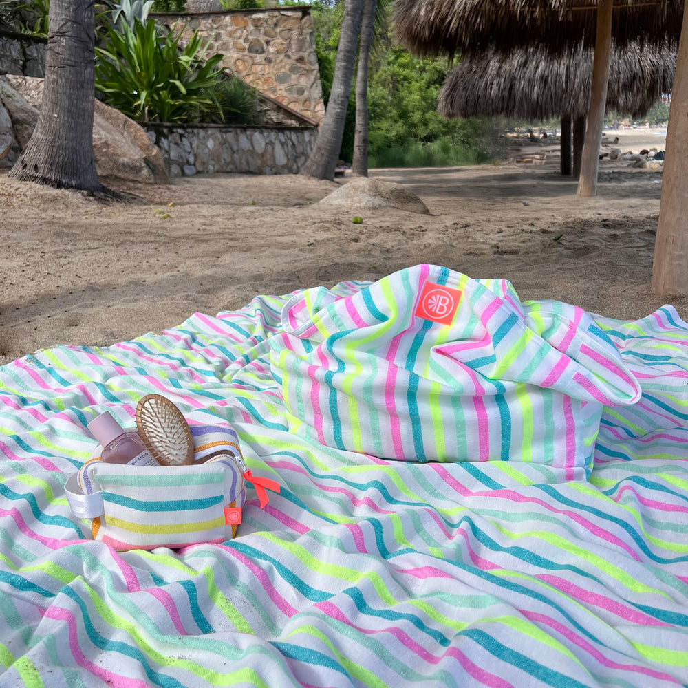 We wanted to create the perfect beach bag, using the same expert craftsmanship behind Las Bayadas towels. The result? A big, lightweight, colorful, and easy-to-wash bag that complements your summer adventures.